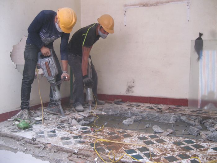 – Phá dỡ tường ngăn, đục nền gạch cũ, hay phá các lớp vữa trát cũ để hoàn thiện lại.